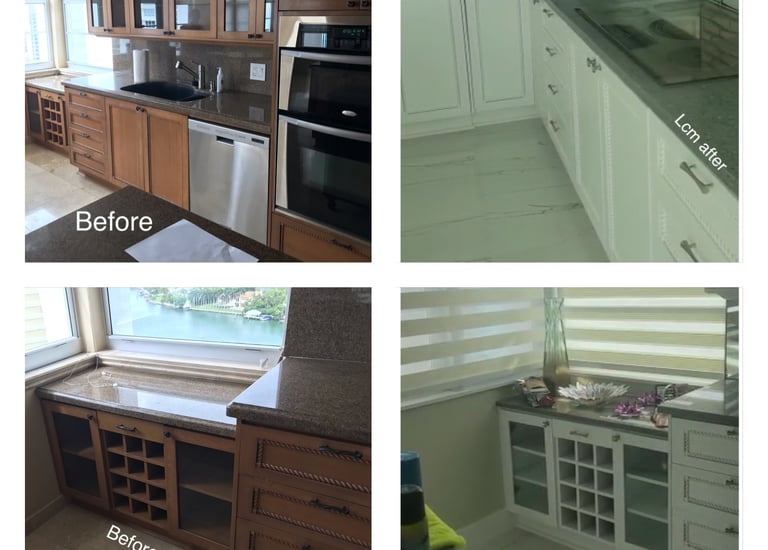 Explore our stunning transformations of kitchen cabinets and counter tops.