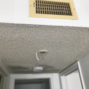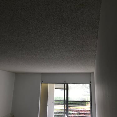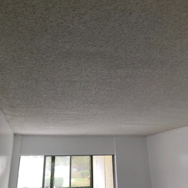 Scrape off the textured material—usually after wetting it with water—then repair, skim-coat, sand, prime, and paint.